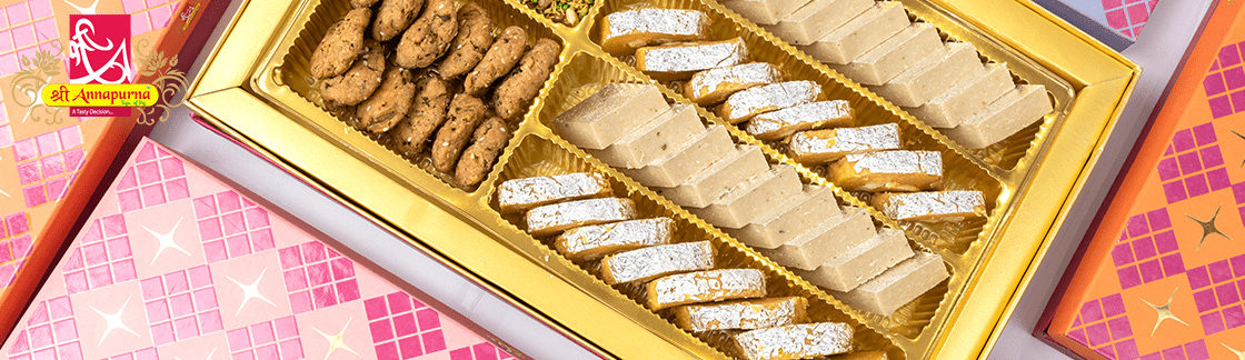 Customized Hampers: Sri Annapurna understands the importance of choice during festive celebrations. We offer customization options for our sweets, allowing you to add a personal touch to your Raksha Bandhan gifts. Whether it’s getting the sweets packed in beautifully decorated boxes or adding personalized messages, Sri Annapurna ensures that every gift reflects your sentiments and makes the recipient feel special.