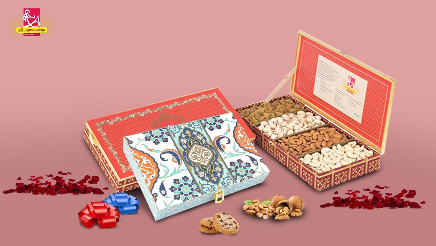 Beautiful packaging – The presentation of gifts is their best feature. And with such lovely treats, when a fantastic presentation is added, it becomes the ideal gift from your end. You may purchase elaborately crafted gift boxes from Sri Annapurna in a variety of designs and shapes.